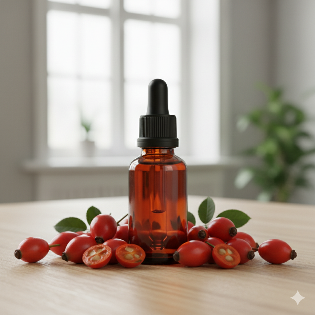 An overnight repair oil with rosehip, argan oil, and vitamin C. Ingredients: Rosehip seed oil, Argan oil, Vitamin C derivative, Tocopherol. How to Use: Apply 4–5 drops to face and neck as final nighttime step.